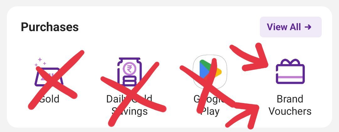 - Open PhonePe App,Go Down and Find Purchases then Select Brand Vouchers