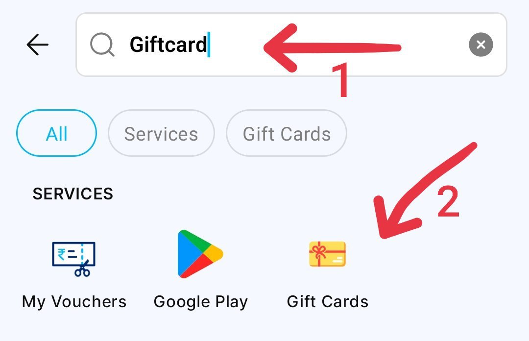 - Open Gpay and Search Gift (as Shown in Picture Below)